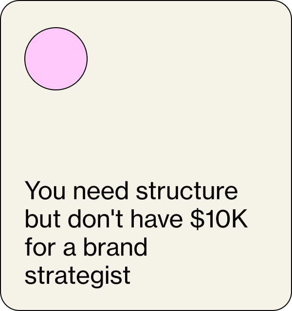 Define your positioning, messaging, and visual direction using the same framework I use with client brands.